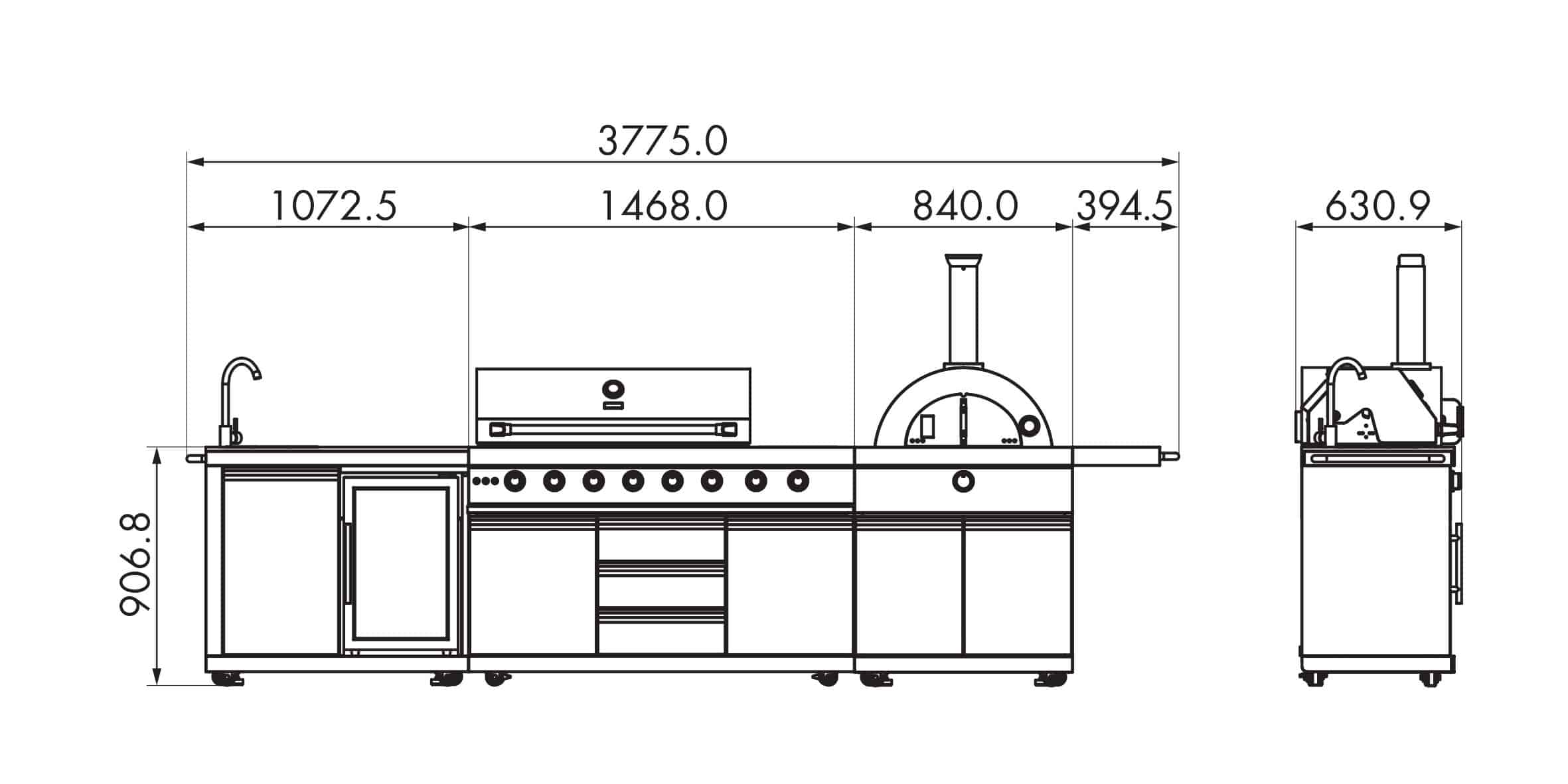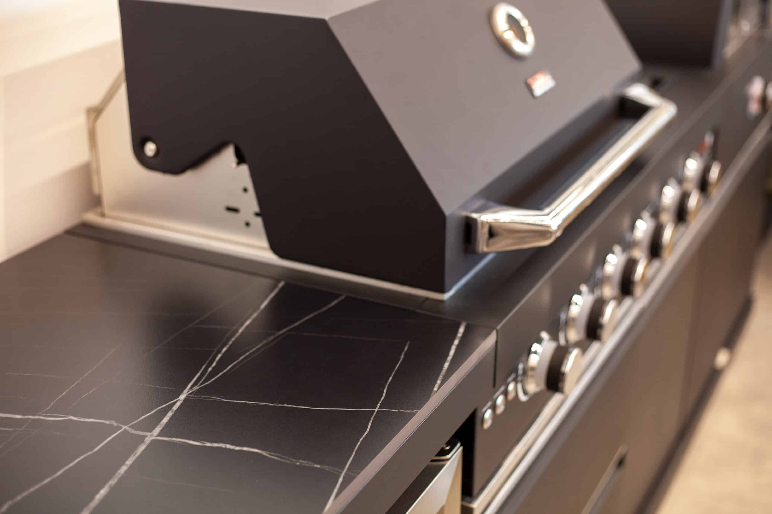 מטבח חוץ עוצמתי ורב-תכליתי שישדרג כל חוויית אירוח עשוי שלדת אלומיניום בגוון שחור מט ובעיצוב מרשים