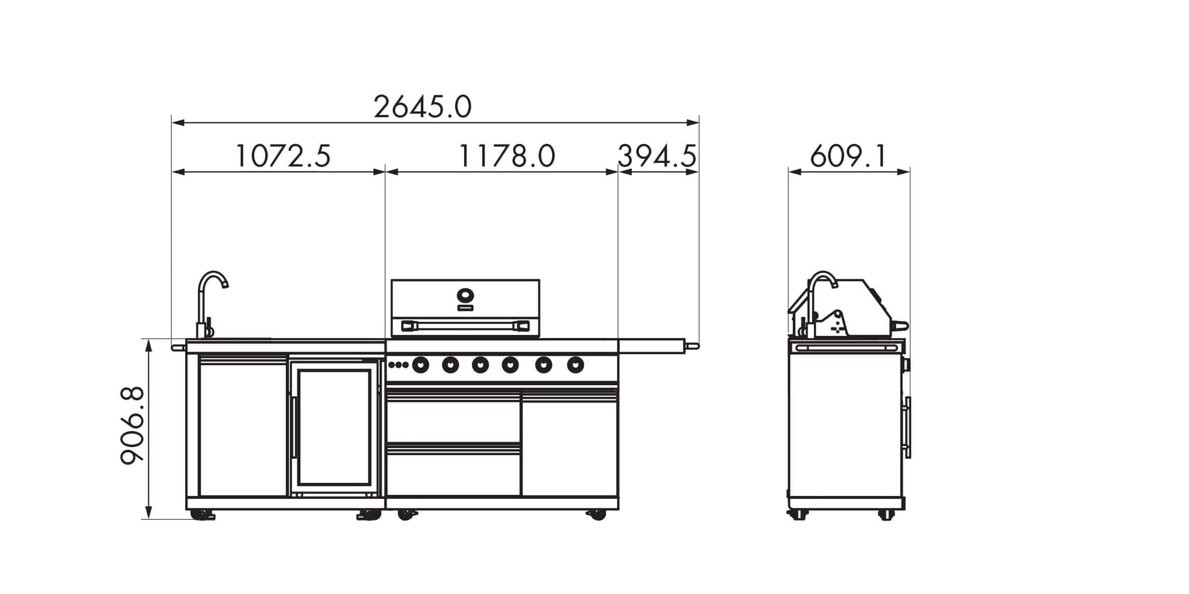 יחידת גריל (כולל מדף מתקפל) : אורך: 157 ס"מ | עומק: 60 ס"מ (כשהמדף מקופל 124 ס"מ)