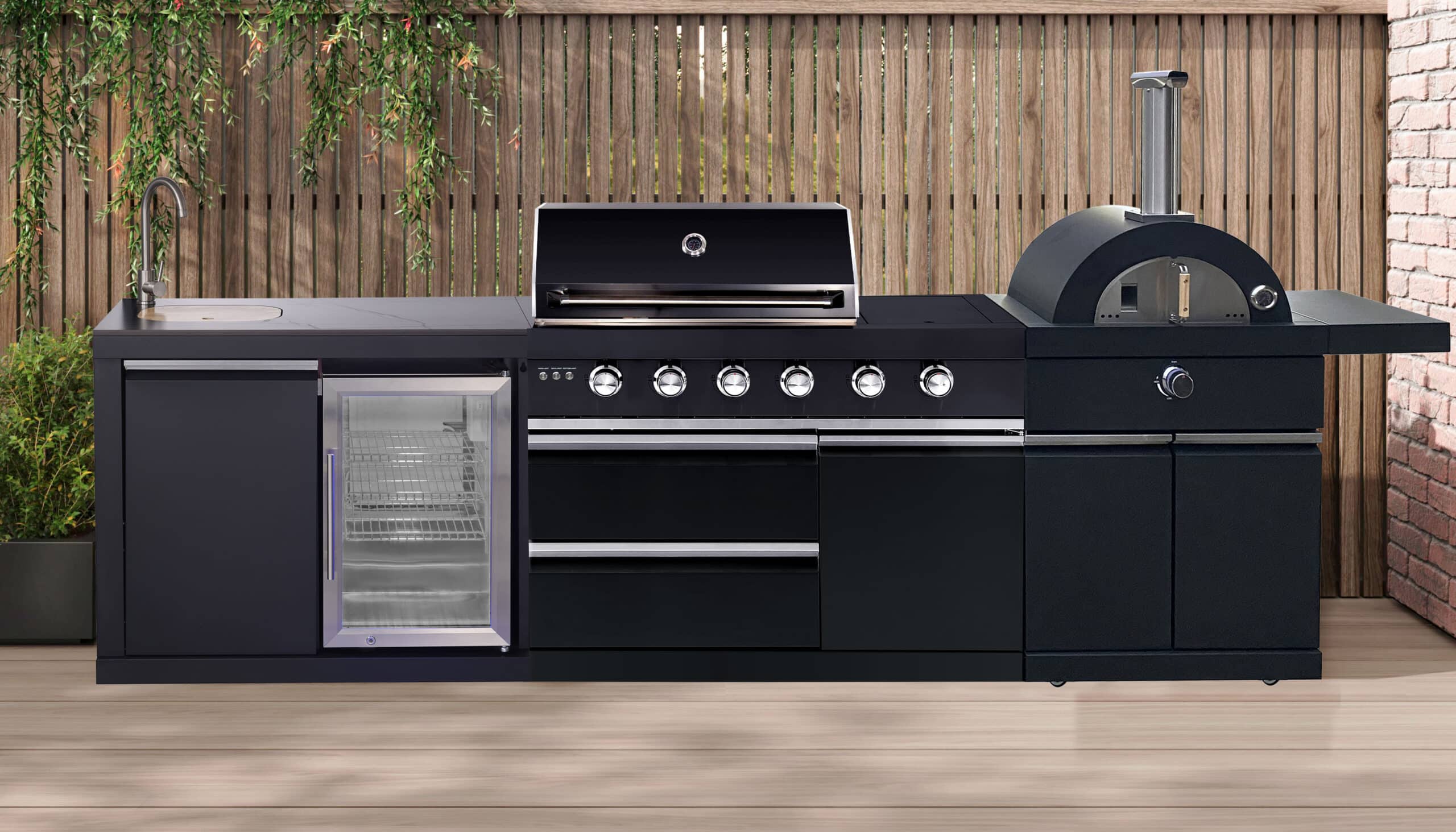 מטבח חוץ עוצמתי ורב-תכליתי שישדרג כל חוויית אירוח עשוי שלדת אלומיניום בגוון שחור מט ובעיצוב מרשים