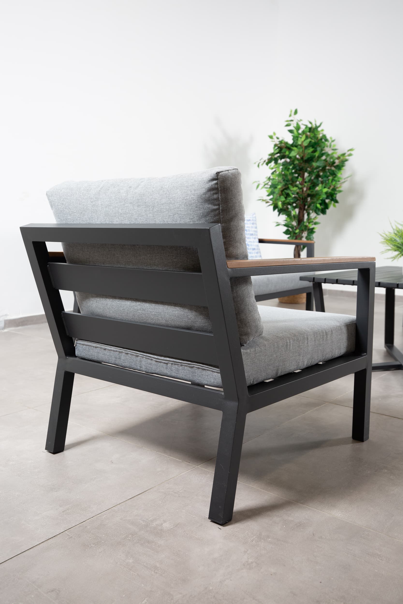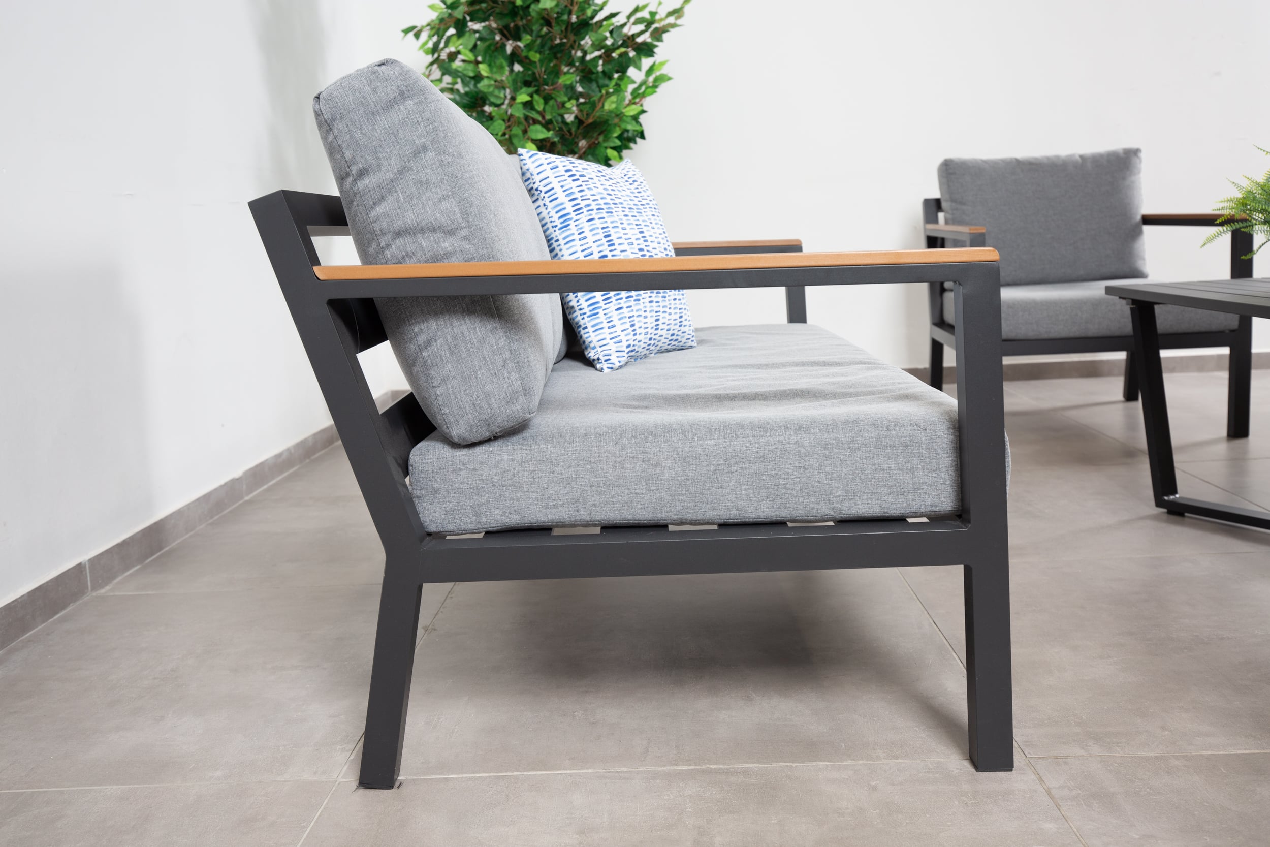פינת ישיבה בעיצוב מודרני משילדת אלומיניום משולבת דמוי עץ טבעי למראה יוקרתי