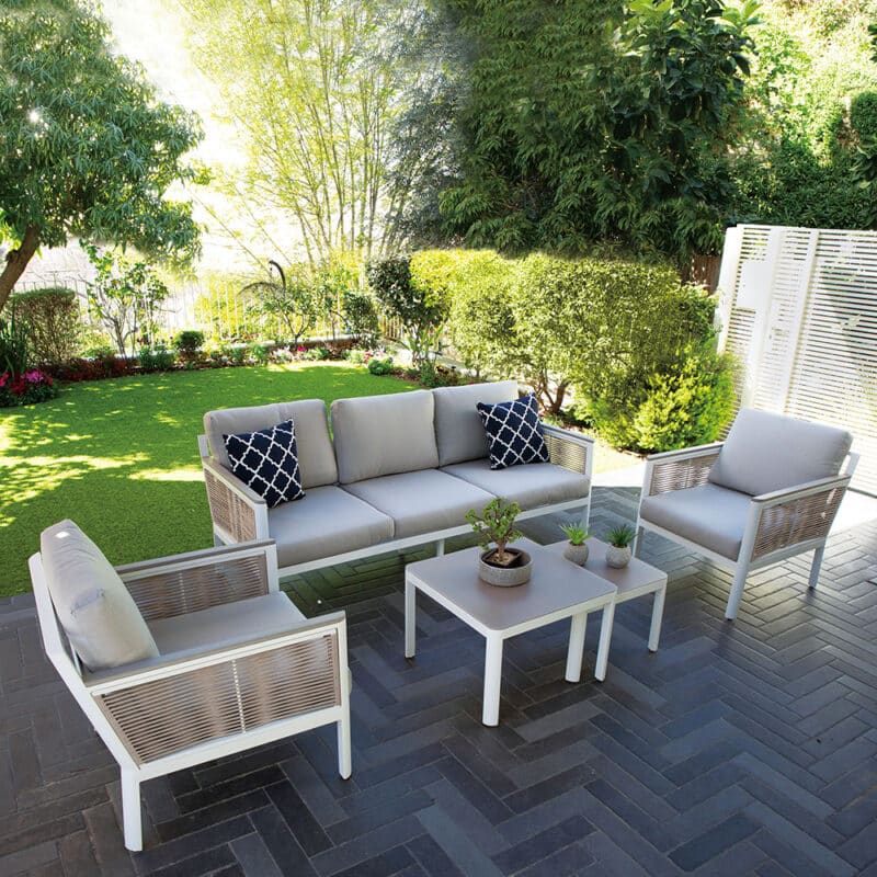 פינת ישיבה יוקרתית ואלגנטית משולבת מקלעת חבלים בעלת מראה עשיר