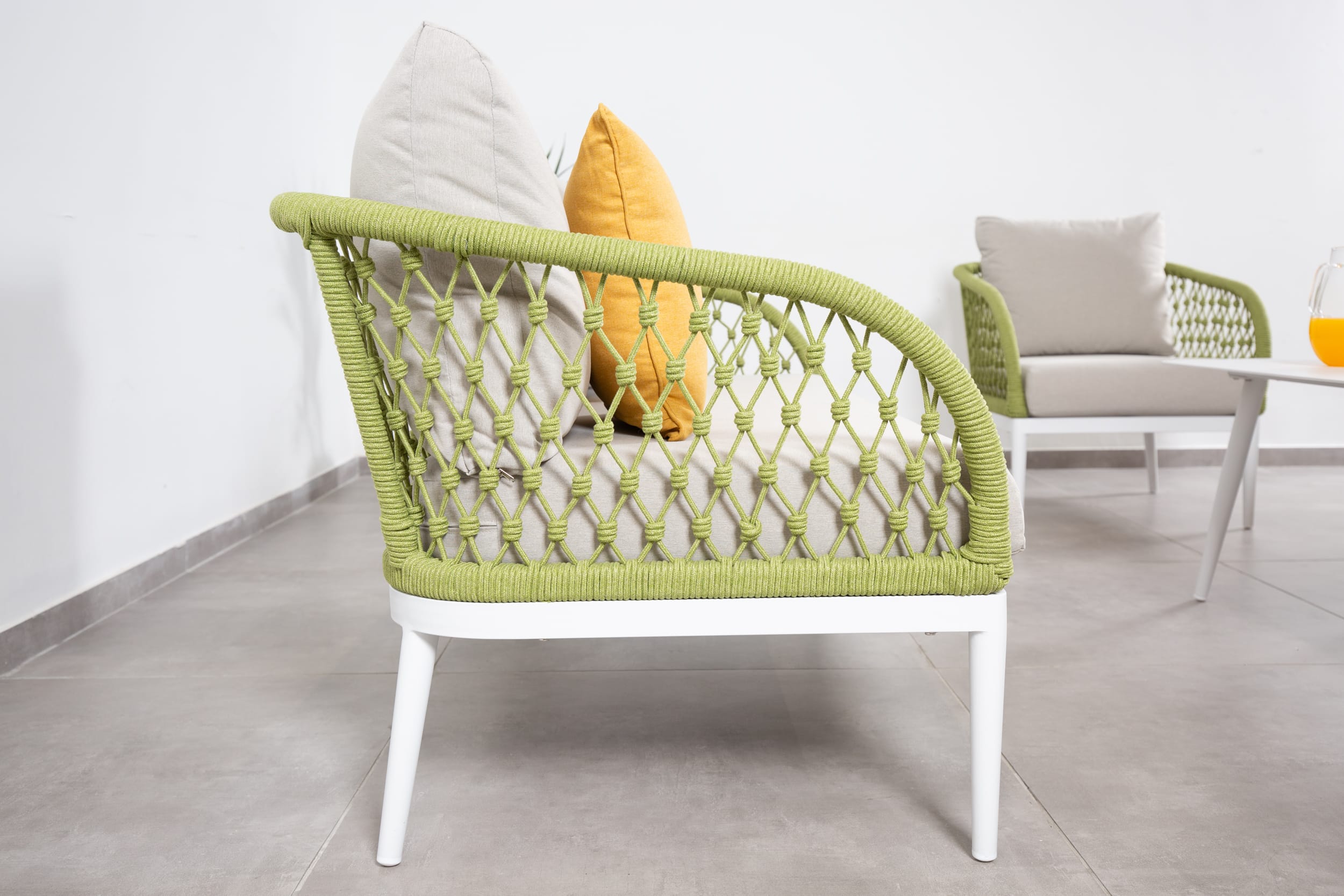 פינת ישיבה מפנקת משלדת אלומיניום בשילוב מקלעת חבלים ייחודית למראה יוקרתי