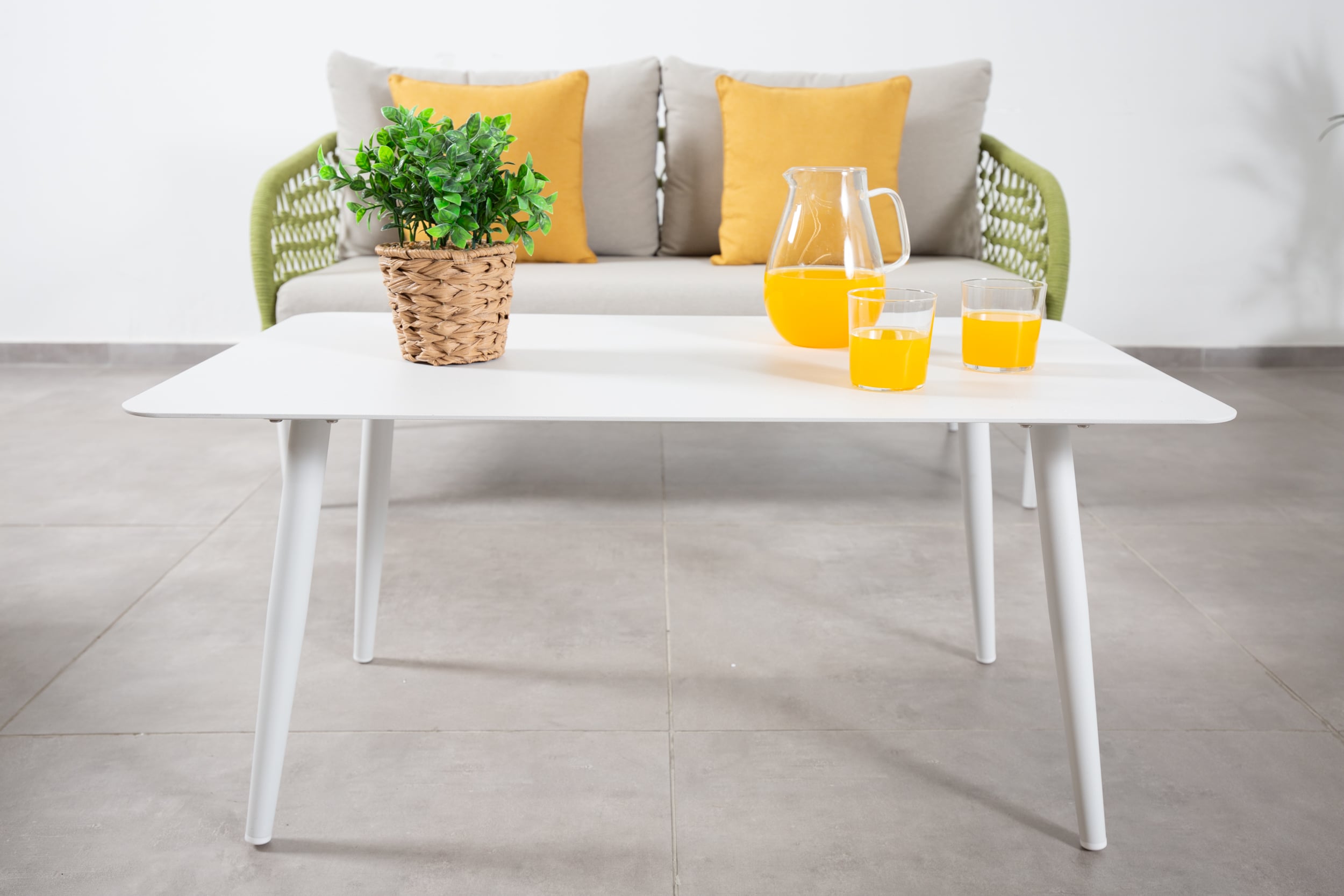 • השולחן עשוי אלומיניום אל חלד בצבע לבן מט, בעלת עיצוב נקי ואלגנטי