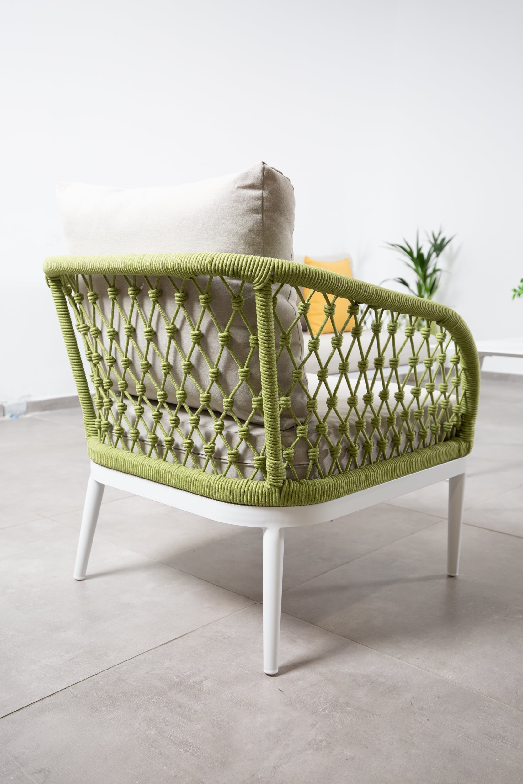 לבן בשילוב חבלים בגוון ירוק | ריפוד: אפור בהיר