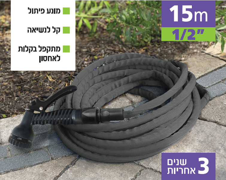 סט צינור בד מחוזק 15 מטר + אקדח 7 מצבים